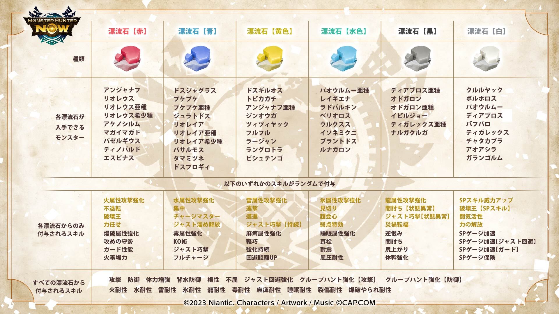※漂流石の種類と入手できるスキルは変更となる場合があります。