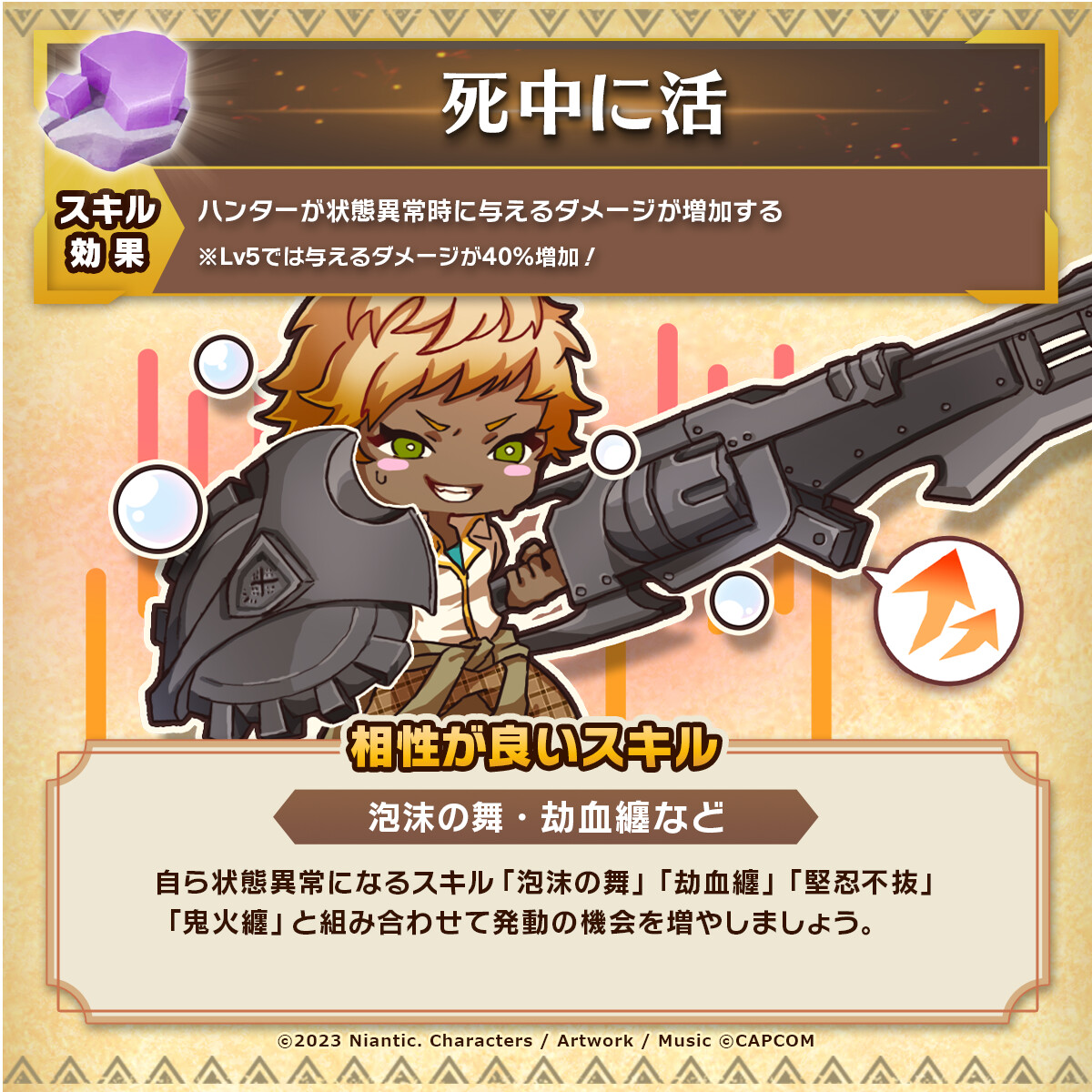 死中に活 | ハンターが状態異常時に与えるダメージが増加する |