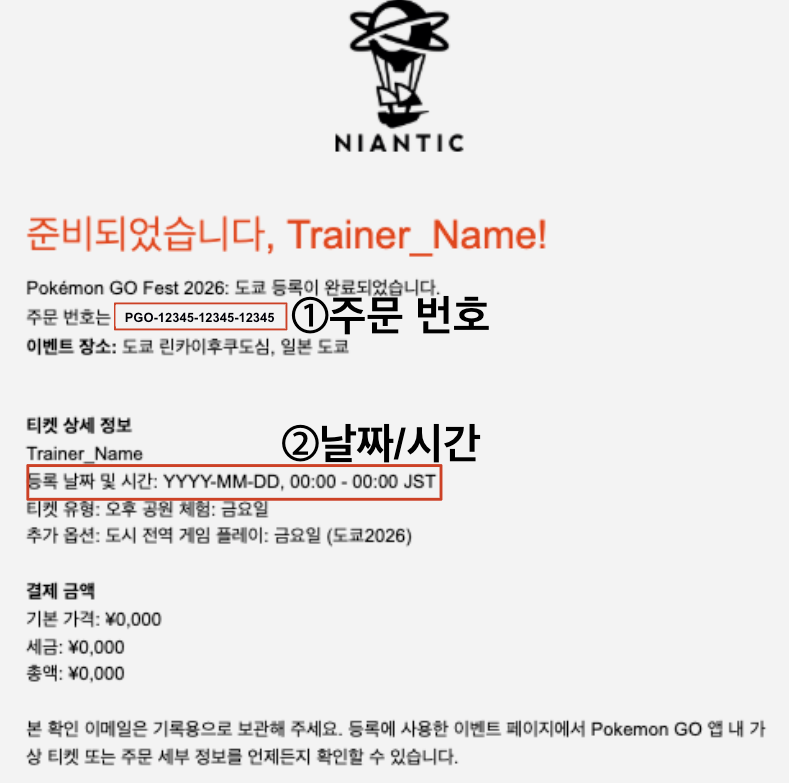 (1) 확인 이메일에서 확인하기티켓 정보 및 주문 번호는 [email protected] 에서 발송된 확인 이메일에서 확인하실 수 있습니다.