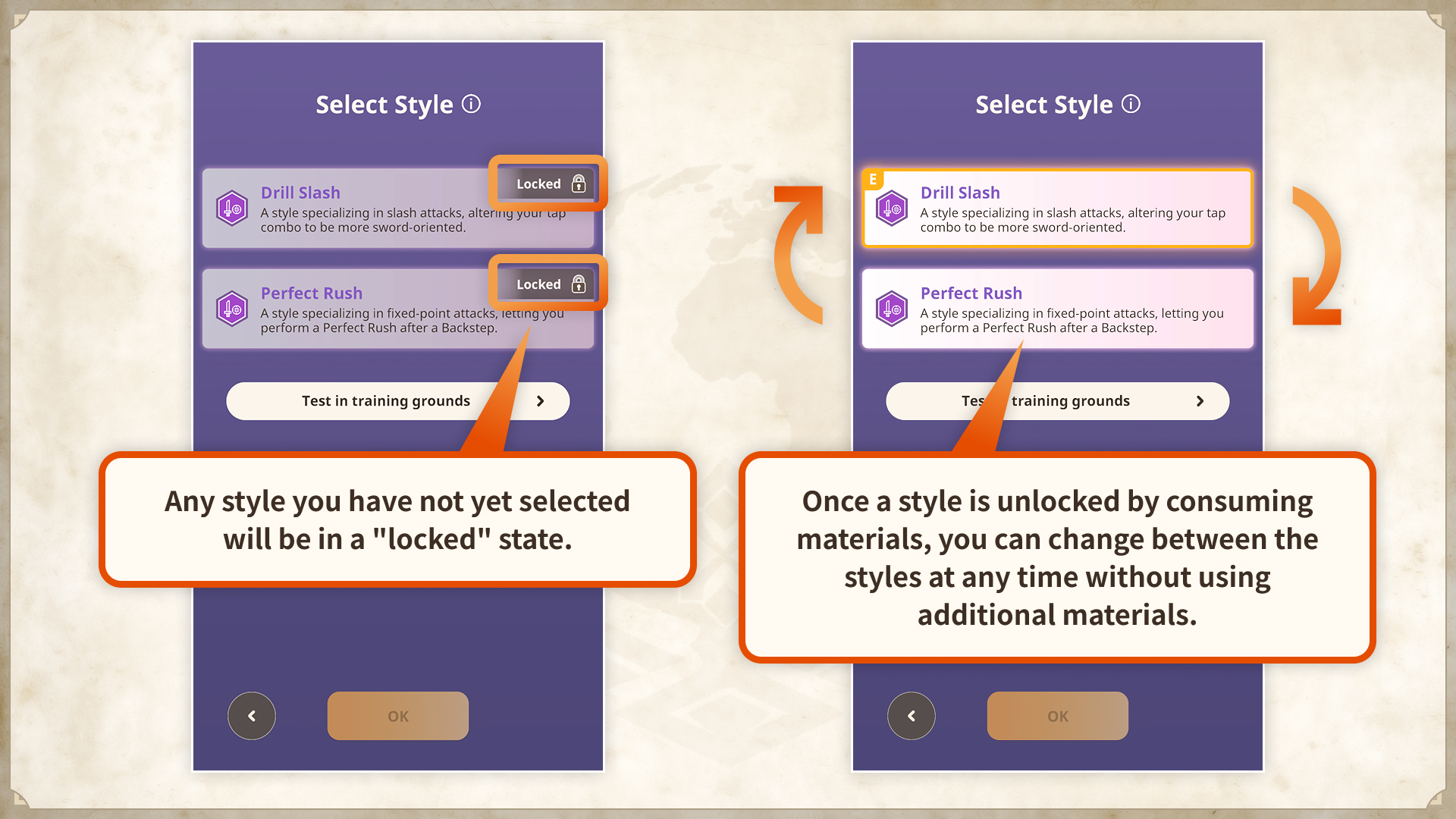 想選用風格,必須將Lv提升至該風格所需的Lv。