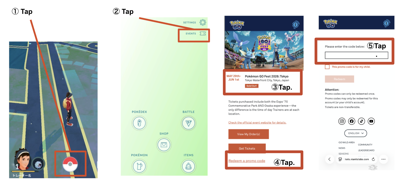 If you have received a redemption code containing a ticket to a Pokémon GO live event (such as Pokémon GO Fest) or event add-ons, you can claim it either through the in-game menu or through the 'Event Ticketing' section in the web store.